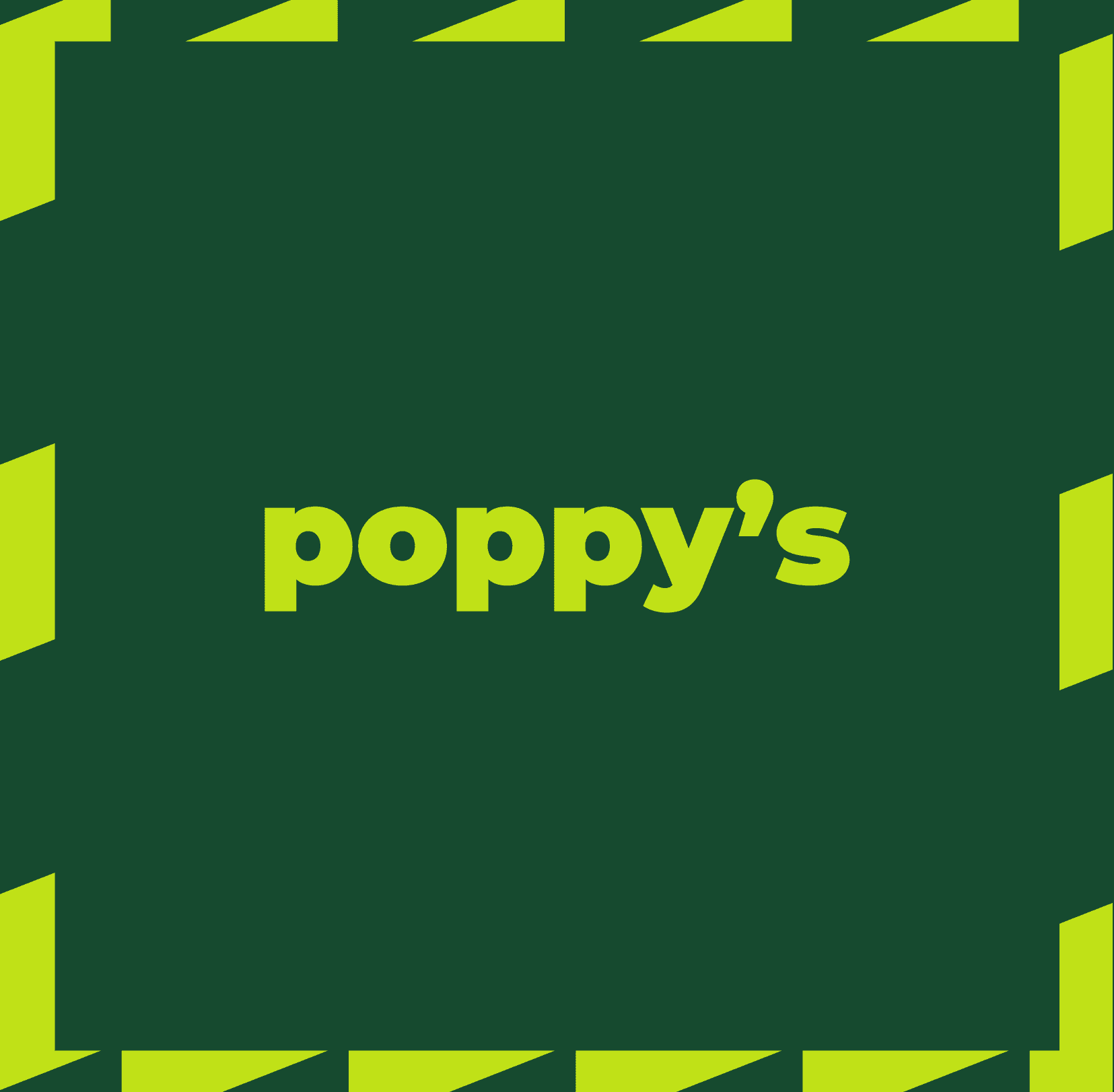 I built Poppy’s as a bright, confident, chef-led food brand that makes automation feel like a benefit not the headline. The system uses bold color blocking to cut through the visual noise of terminals and retail corridors, staying readable from distance while signaling freshness and appetite in a place where most choices look beige, backlit, and generic. The forward-facing zigzag pattern acts as a simple motion cue capturing the energy of travel, guiding the eye toward the kiosk, and reinforcing the brand position: fast, fun, and fresh, built for people in motion. Together, color + pattern create a high-visibility, high-recall identity that holds up across wall lightboxes, menu boards, and kiosk surfaces so the brand stays clear even at peak footfall and peak speed.